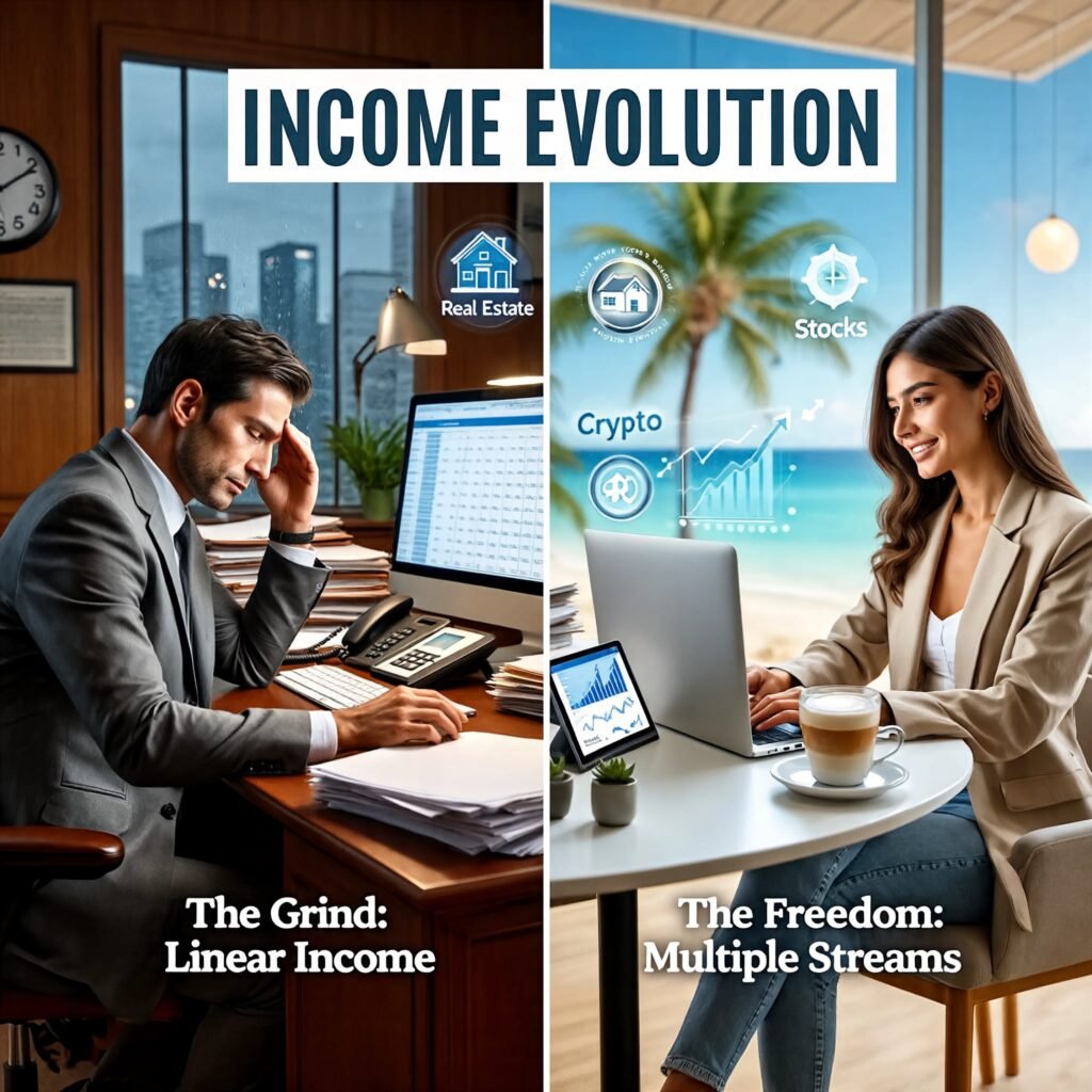 “9–5 Job vs Digital Income Streams” comparison graphic