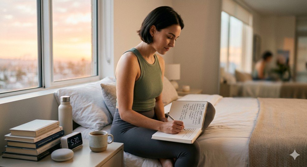 The “top 1% morning routine” — wake up at 5 AM, meditate, exercise, journal, read, and somehow become superhuman before breakfast.